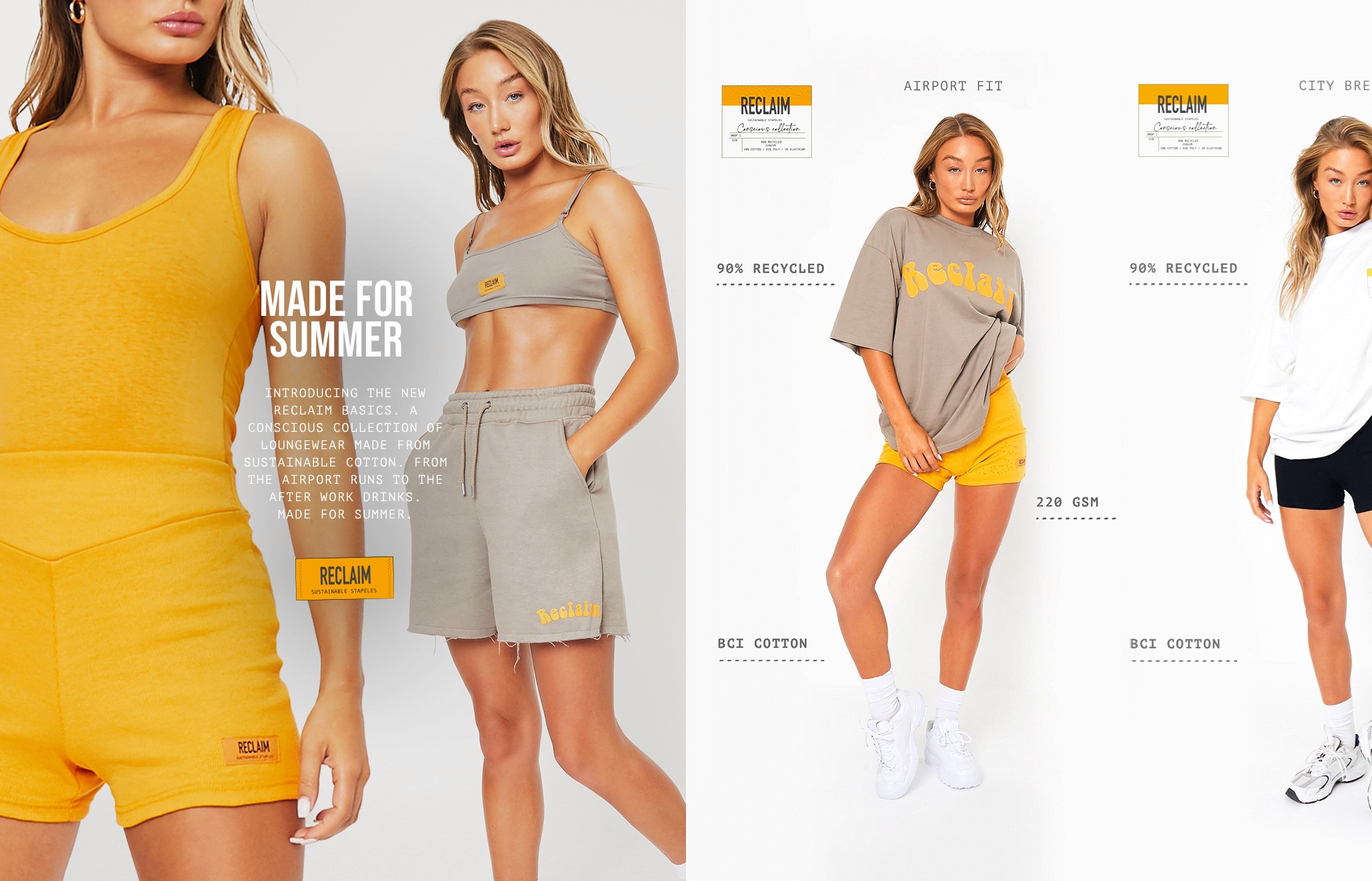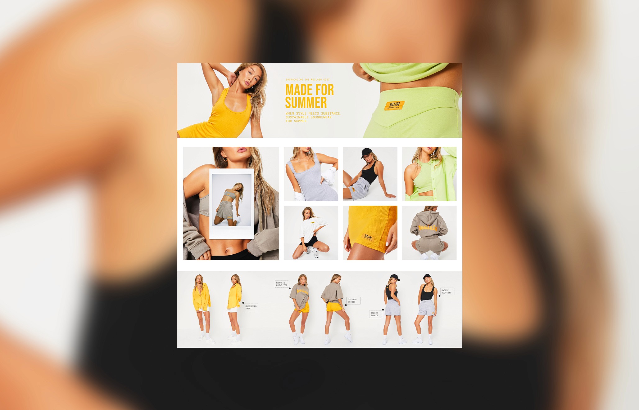 Whilst Senior Design at I SAW IT FIRST we launched the campaign 'Reclaim,' I SAW IT FIRST's first ever conscious and sustainable collection. Launched amidst the peak of summer, our aim was to capture the vibrant essence through an engaging high summer colour palette while remaining true to our commitment to recycling.
